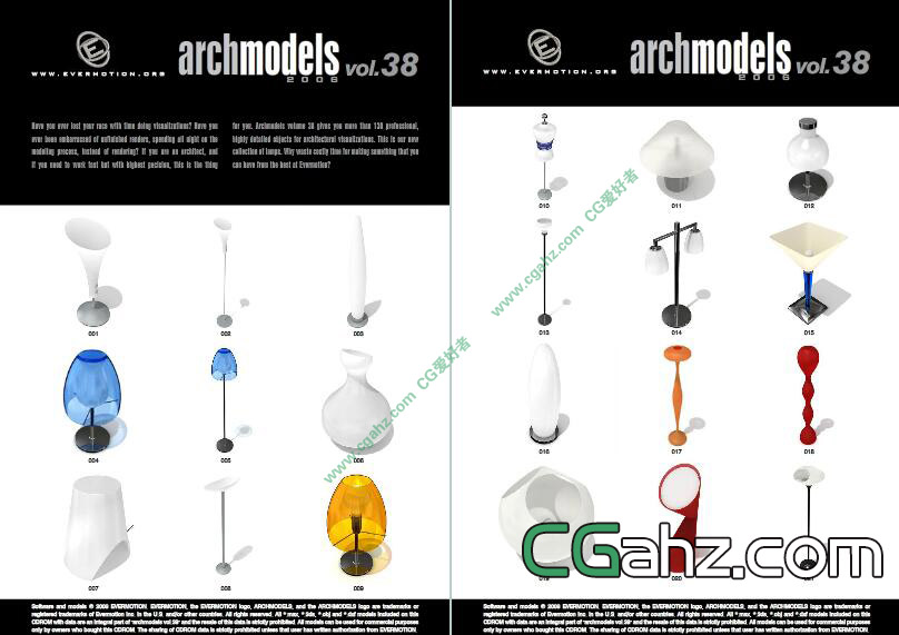 这是一套EV公司推出的3d模型,第三十八期,Archmodels vol. 38,包含路灯模型,台灯模型,水晶灯模型,吊灯模型,挂灯模型,白色等模型,螺旋形等模型,3d模型等灯具模型